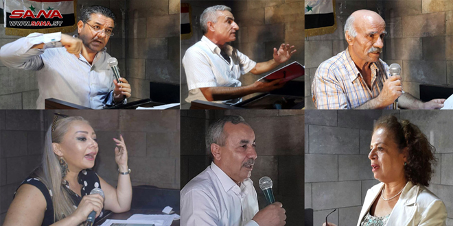 أمين فرع إدلب لحزب البعث العربي الاشتراكي أحمد نجار أشار إلى أهمية العودة إلى تفعيل ثقافة المعري، الذي أراد الإرهاب أن يحاول إلغاءها بعد أن حطموا الضريح، وها نحن مع اتحاد الكتاب العرب نرد على كل المتورطين أننا سنحرر كل شبر من أراضينا.