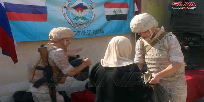 وأعرب عدد من الأهالي عن شكرهم للأصدقاء في روسيا لوقوفهم إلى جانب الشعب والجيش السوري في مكافحة الإرهاب وإعادة الأمان إلى الأحياء والقرى والبلدات التي خربتها التنظيمات الإرهابية سابقاً، ولتقديم المساعدات الإنسانية للأهالي.