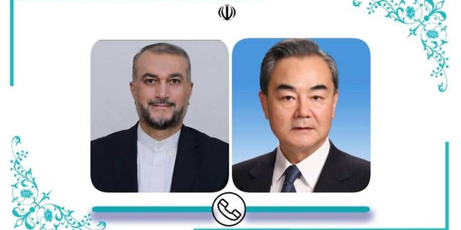 بحث وزير الخارجية الإيراني حسين أمير عبد اللهيان خلال اتصال هاتفي اليوم مع نظيره الصيني وانغ يي التطورات الإقليمية والدولية، إضافة إلى العلاقات الثنائية بين البلدين.