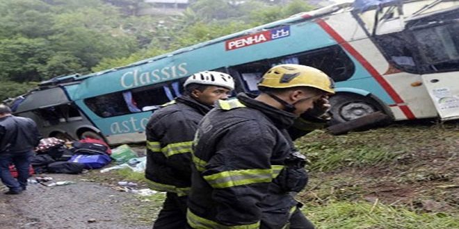 ونقلت وكالة اسوشييتد برس عن مصدر بالشرطة البرازيلية قوله: إن “حافلة تقل مشجعين رياضيين عائدة إلى الديار بعد مباراة فريقهم انقلبت في محاولة لتفادي الاصطدام مع حافلة أخرى، ما أدى إلى مصرع سبعة أشخاص على الفور وإصابة 36 آخرين بجروح متفاوتة، تم إسعافهم إلى المشفى بعد إغلاق الطريق”.