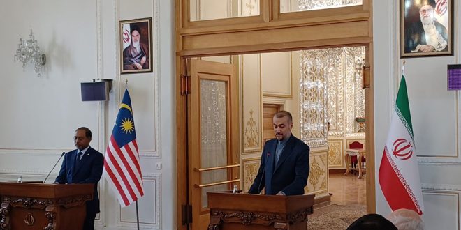 أكد وزير الخارجية الإيراني حسين أمير عبد اللهيان ونظيره الماليزي زامبري عبد القدير تطابق وجهات النظر بين بلديهما في ضرورة دعم الشعب الفلسطيني ومحاربة الإرهاب.