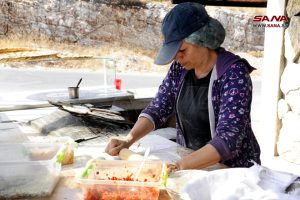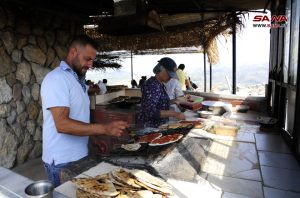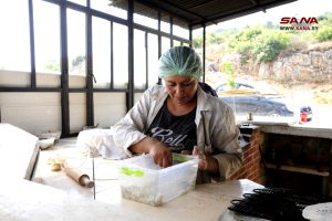 على الطريق الواصل بين محافظات “حماة وحمص وطرطوس” وعلى قمة جبلية عالية ترصد جمال الطبيعة في مشتى الحلو بريف طرطوس، تفوح رائحة فطائر تنور “شام” الذي أسسه جريح الوطن حسام جنيدي الذي يؤمن من خلاله مصدر رزقه.