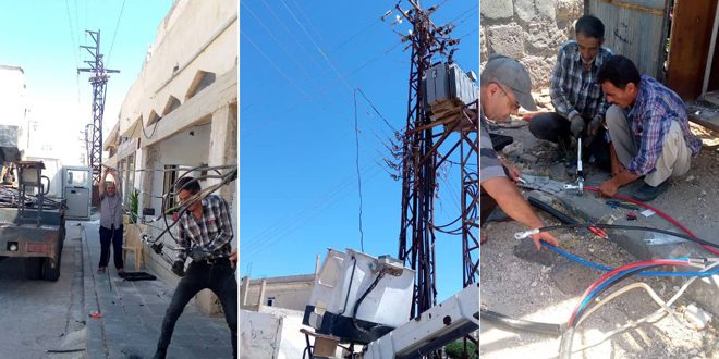 أنهت ورشة العمل الفنية في قسم كهرباء بصرى الشام عمليات تركيب واستبدالعدد من المحولات الكهربائية والأمراس والكابلات القديمة.