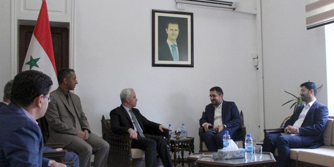 بحث وزير الاتصالات والتقانة المهندس إياد الخطيب مع مستشار وزير الاتصالات وتقانة المعلومات في إيران الدكتور ميرزا بور والوفد المرافق له سبل تعزيز التعاون في مجال الاتصالات وتقانة المعلومات بين البلدين.