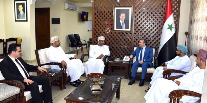 بحث وزير الصناعة الدكتور عبد القادر جوخدار مع وفد من جهاز الاستثمار في سلطنة عمان برئاسة طلال بن عيسى الحراصي مدير أول استثمارات التنويع الاقتصادي بالجهاز سبل تطوير التعاون في المجال الصناعي والصناعات الزراعية الغذائية، وإقامة مشاريع مشتركة، وتبادل الخبرات بين البلدين.