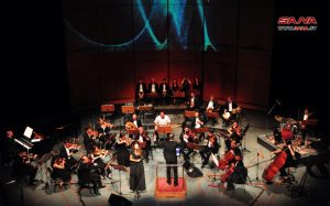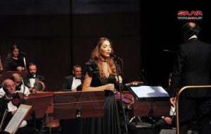 ومن ألحان غابي صهيون أدت ملوحي أغنيتي أنساك مافيي والشام ما بتموت لتختتم الأمسية بوصلة من التراث السوري.