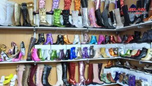 ومن قسم الأحذية بين ياسر حمصي أن مشاركته اليوم لعرض مختلف أنواع الأحذية والتي تمتاز بجودتها العالية تهدف إلى عقد صفقات مع تجار من الدول العربية وزيادة فرص التصدير إليها.