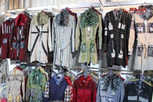 ومن قسم الشرقيات تحدث عبد السلام عتيق عن منتجاته المعروضة من مختلف الأنواع وفق خط إنتاج في مدينة حلب، والذي يبدأ من صناعة الخيط وانتهاء بتصنيع مختلف أنواع الشرقيات.
