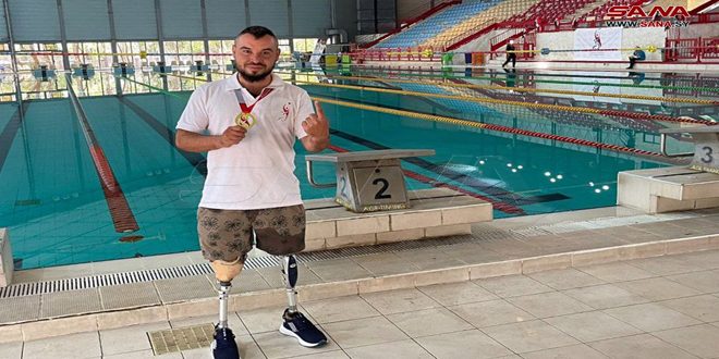 براحتي يديه يخلع طرفيه الاصطناعيين اللذين سيرافقانه مدى حياته، مستعداً لدخول المسبح ومتحدياً إصابته التي يعتبرها وسام شرف وإخلاص للوطن ويقول: “لا شيء مستحيلاً أنا من يتحكم بظروفي..” بهذه العبارة استهل جريح الوطن محمد جفان حديثه لنشرة سانا الشبابية.