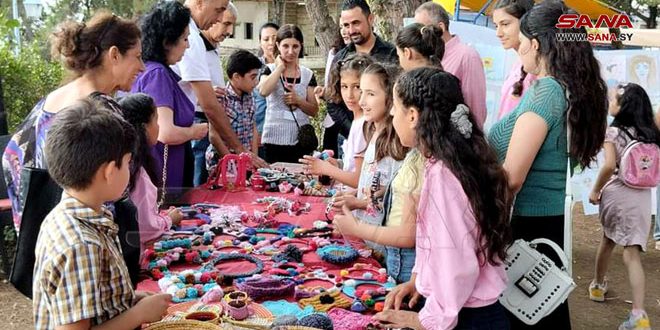 نظمت جمعية إحياء التراث في حديقة فندق روز ماري بالدريكيش في محافظة طرطوس معرضاً فنياً للرسم والمشغولات اليدوية بمشاركة 30 طفلاً وطفلة.