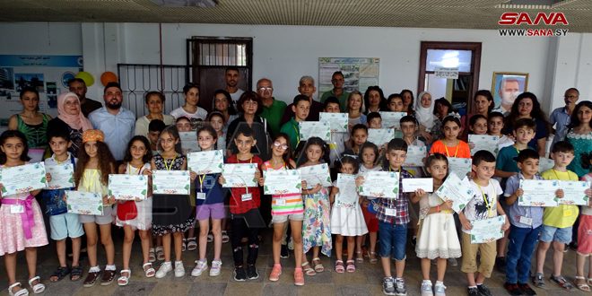 كرم المعهد العالي لبحوث البيئة في جامعة تشرين الأطفال المشاركين في مسابقة بيئة قريتي ومدينتي مسؤوليتي، ضمن فئات الرسم والقصة القصيرة والفيديو للشرائح العمرية من 6 إلى 13 سنةً.