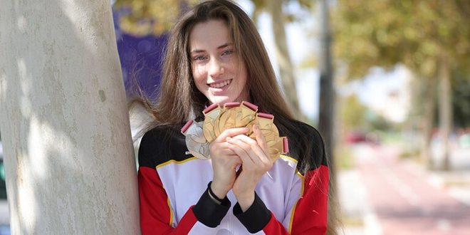 وتوجت النجمة الألمانية بلقب بطلة العالم في العام الماضي بفوزها بالميدالية الذهبية في تمارين الصولجان بالعاصمة البلغارية صوفيا.