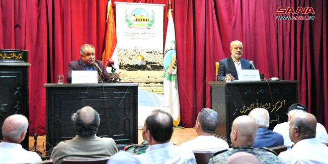 أقامت مؤسسة القدس الدولية – سورية واللجنة الشعبية العربية السورية لدعم الشعب الفلسطيني ومقاومة المشروع الصهيوني والفصائل الفلسطينية المقاومة اليوم محاضرة بعنوان “إسرائيل من الفكرة إلى الزوال”، وذلك في المركز الثقافي العربي بأبو رمانة بدمشق.