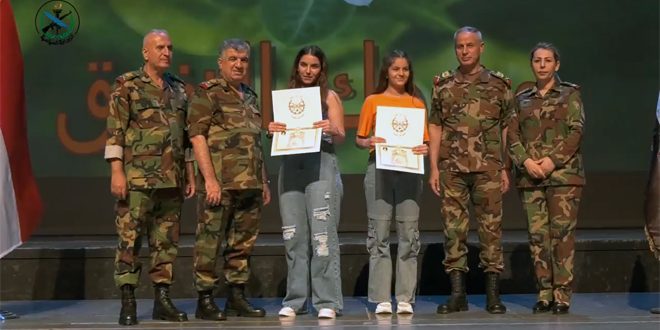 برعاية السيد الرئيس الفريق بشار الأسد القائد العام للجيش والقوات المسلحة أقامت مديرية شؤون الشهداء والجرحى والمفقودين بالتعاون مع الإدارة السياسية حفلاً تكريمياً في دار الأسد للثقافة والفنون للطلبة المتفوقين في شهادتي التعليم الأساسي والثانوية العامة لعام 2023، وناب عن السيد الرئيس في رعاية الحفل العماد علي محمود عباس نائب القائد العام للجيش والقوات المسلحة- وزير الدفاع.