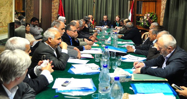طالب أعضاء مجلس نقابة المهندسين الزراعيين ومجلس خزانة التقاعد ورؤساء فروع النقابة بالمحافظات خلال اجتماع عقد بمقر النقابة اليوم بتأمين مستلزمات الإنتاج وتخفيض أسعارها وتوفير مادة المازوت للحصادات للتمكن من حصاد محصولي القمح والشعير وتسويق محصول الحمضيات وتيسير عملية نقل محصول الحبوب للصوامع.