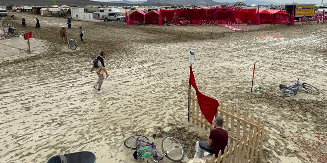 أعلنت السلطات المحلية في ولاية نيفادا الأمريكية مصرع شخص، ومحاصرة عشرات آلاف الأشخاص في موقع تجمع الرجل المحترق وسط صحراء الولاية الذي تحول إلى مستنقع بعد هطول الأمطار الغزيرة.