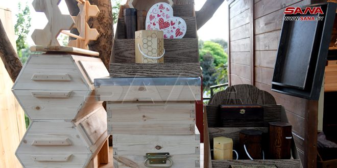 من جهته أشار أيوب عجاج إلى أنه يشارك في المعرض للمرة الثانية، ويقوم بتصنيع جميع أنواع الخلايا الخشبية بعدة أشكال، إضافة إلى تصنيع علب خشبية خاصة بتخزين العسل، بينما أوضح مجدي خليفة أنه يشارك في عرض منتجاته الخاصة بالنحالين من ألبسة وأدوات حماية تتضمن بدلة قماشية من طبقتين وقناع شبكي وكفوف من الجلد الطبيعي، وجميعها مصنعة من خامات وأقمشة قطنية من إنتاج محلي.