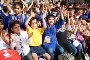 بمناسبة بدء العام الدراسي الجديد، أقامت مدرسة آذار للتعليم الأساسي في مدينة درعا احتفالية “أهلاً مدرستي”، وتضمنت عروضاً فنية وراقصة من التراث الشعبي ولوحات رياضية للطلبة.
