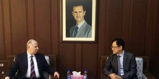 بحث وزير الموارد المائية الدكتور تمام رعد مع سفير جمهورية الصين الشعبية بدمشق شي هونغوي والوفد المرافق له عدداً من المواضيع المتعلقة بعمل الوزارة وقطاع المياه بشكل عام.