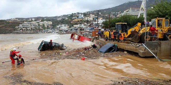 ونقلت وكالة اسوشيتد برس عن إدارة الإطفاء اليونانية قولها: إن “رجلاً لقي مصرعه في بلدة (فولوس) وسط البلاد، عندما انهار جدار وسقط عليه، كما تم الإبلاغ عن فقدان رجل آخر جرفته مياه الفيضانات”.