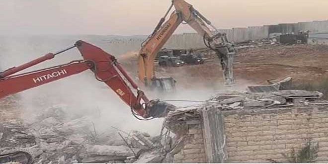وذكرت وكالة وفا الفلسطينية أن جرافات قوات الاحتلال اقتحمت القرية فجراً، وهدمت منشآت صناعية ومحل قطع سيارات وبعض المباني السكنية.