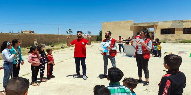 نظم متطوعو الهلال الأحمر العربي السوري بالسويداء جلسات وأنشطة توعوية حول طرق انتقال الكوليرا وأعراضها والوقاية منها، وذلك في 7 قرى بريف المحافظة الشرقي.