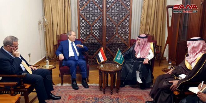 بحث وزير الخارجية والمغتربين الدكتور فيصل المقداد مع رئيس وفد الإمارات العربية المتحدة إلى اجتماع الحوار السياسي العربي الياباني المنعقد في مقر جامعة الدول العربية بالقاهرة وزير الدولة أحمد علي الصايغ، العلاقات الثنائية وسبل تعزيزها بين البلدين الشقيقين.