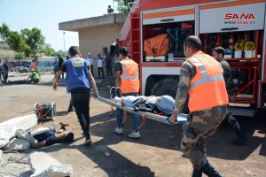 من جهته، تحدث رئيس دائرة الجاهزية والإسعاف والطوارئ في مديرية صحة اللاذقية الدكتور لؤي سعيد عن مشاركة المديرية مع باقي المؤسسات الخدمية بتنفيذ بيان محاكاة لكارثة حقيقية على أرض الواقع، والتدخل السريع لسيارات الإسعاف والفرق الطبية.