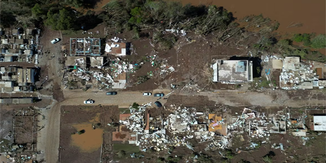 وتسببت العواصف التي بدأت الإثنين الماضي في غمر أحياء بكاملها في ولاية ريو غراندي دو سول الجنوبية بالمياه، كما اجتاحت الفيضانات المفاجئة والانهيارات الأرضية مساحات شاسعة من الأراضي مخلفة وراءها حطام المنازل المدمرة والمياه الموحلة.