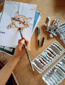 وأشارت إلى أنها سعت لتعلم مختلف تقنيات الرسم لتكون قادرة على نقل تصوراتها وموضوعاتها بصورة احترافية، مستعينة بالعديد من مصادر التعلم المتاحة عبر الإنترنت.