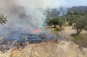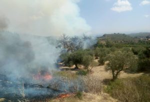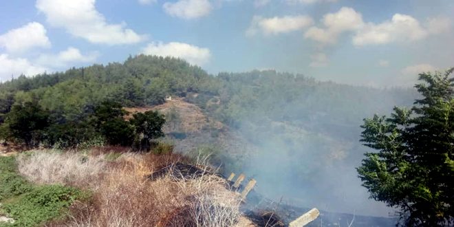 أخمد عناصر إطفاء الحراج والدفاع المدني حريقاً قرب مدجنة الجريمقية على طريق حلب القديم بناحية البهلولية في اللاذقية قبل أن تطال نيرانه الغابة القريبة.