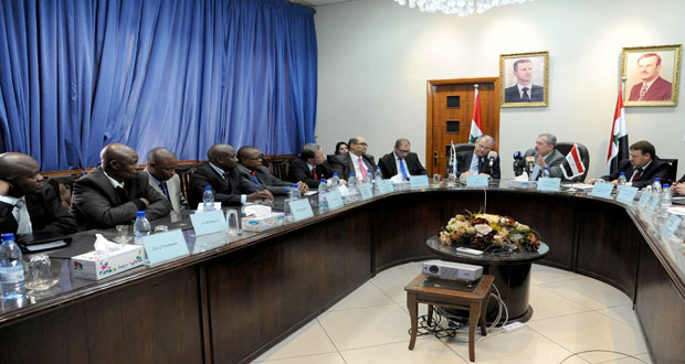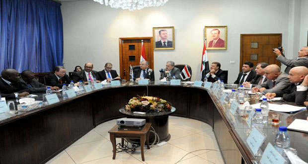 بحث وزير الأشغال العامة المهندس حسين عرنوس خلال لقائه اليوم وفدا من جمهورية جنوب إفريقيا يضم اقتصاديين ومديري شركات برئاسة تيمبا خبوشي آفاق التعاون بين البلدين في مجالات البناء والإعمار.