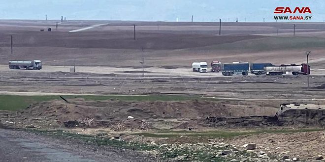 وذكرت مصادر أهلية في اليعربية أقصى شمال شرق البلاد لمراسلة سانا أن قوات الاحتلال الأمريكي أخرجت صباح اليوم رتلاً من الآليات إلى الأراضي العراقية عبر معبر المحمودية غير الشرعي، من بينها 40 صهريجاً محملة بالنفط السوري المسروق من حقول الجزيرة.