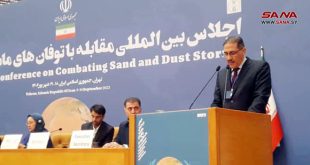 بمشاركة سورية واصل المؤتمر الدولي لمكافحة العواصف الرملية والغبارية أعماله اليوم في العاصمة الإيرانية طهران، وقدم الوفد السوري عرضاً تقديمياً حول هذه العواصف في سورية.