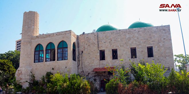 في الطريق الواصل بين الكورنيش الغربي والجنوبي في مدينة اللاذقية وعلى الرصيف الشمالي من حوض المرفأ القديم يطالعك جامع صغير يجذب الناظر إليه بحجارته الذهبية القديمة التي يعود بناؤها لما يقارب الثلاثمئة عام، وبوابته التي جعلته فريداً من نوعه في العالم، فهو الجامع الوحيد في العالم الإسلامي بابه ضمن قاعدة مئذنته والوحيد في محافظة اللاذقية الذي يقع في الطابق الثاني.