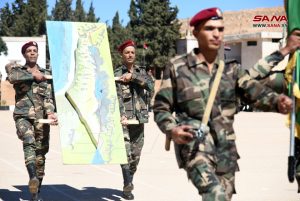 وأضافت رئاسة هيئة أركان : “نحمل أمانة الوفاء لسورية العروبة، والانتماء لفلسطين المقاومة فندافع عن سورية العطاء وسيادتها واستقرارها دفاعنا عن فلسطين وترابها وحريتها سائرين على طريق الشهادة أو النصر، واثقين من قدرتنا على تحقيق النصر لأننا أصحاب حق وأصحاب قضية عادلة وصدورنا عامرة بالإيمان، بقضيتنا.. ونملك القدرة والكفاءة على مواجهة العدو وتكبيده أفدح الخسائر، وسنرفع راية النصر بسواعدنا فوق تراب الجولان وفلسطين”.
