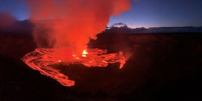 قالت هيئة المسح الجيولوجي الأمريكية: “إن بركان كيلاويا في جزيرة بيغ آيلاند بهاواي بدأ في الثوران بعد ظهر أمس، وإن التدفقات تقتصر حالياً على الأرضية المحيطة بفوهة البركان”.