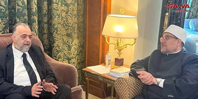وناقش الجانبان خلال لقائهما في القاهرة تعزيز التعاون بين المؤسستين الدينيتين في سورية ومصر وتبادل الخبرات، ولا سيما في مجالات تطوير الخطاب الديني والتعليم الشرعي وتفسير القرآن الكريم.