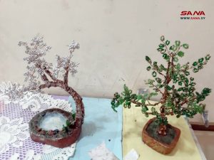 وأشارت مكري إلى الاستفادة من مادة الخرز وبعض الأسلاك وتوظيفها لتشكيل مجسمات جديدة للأشجار ذات الأشكال والألوان المختلفة.