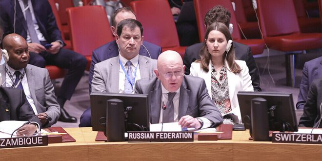 ونقل موقع قناة روسيا اليوم عن مندوب روسيا الدائم لدى الأمم المتحدة فاسيلي نيبينزيا قوله: “إن روسيا عقدت اجتماعا لمناقشة تأثير الضخ غير المقيد للأسلحة إلى أوكرانيا من قبل الغرب على آفاق حل الأزمة الأوكرانية، واقترحت أن ينظر المجلس في هذا الموضوع كل شهر تقريباً”.