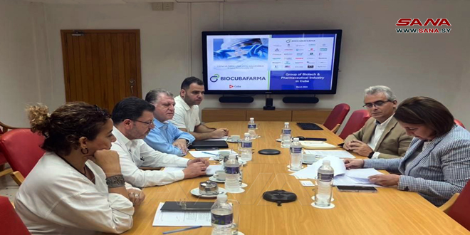 بحث رئيس هيئة التخطيط والتعاون الدولي الدكتور فادي سلطي الخليل مع نائبة رئيس مؤسسة بيوكوبا فارما للصناعات الدوائية في كوبا مايدا ماروي سبل وآفاق تعزيز التعاون بين سورية وكوبا في المجال الدوائي.