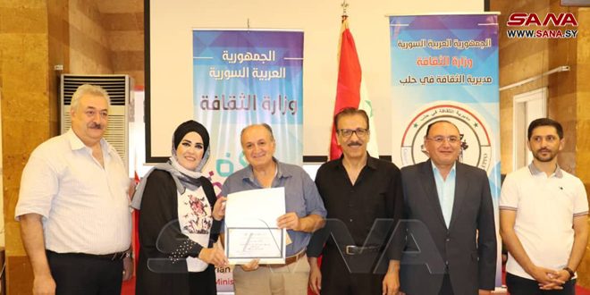 كرمت مديرية الثقافة بحلب اليوم مجموعة من المخرجين والخطاطين الذين قدموا جهوداً كبيرة في مجال مسرح الطفل والفن التشكيلي، تعزيزاً للحركة الفنية والمسرحية بحلب، وذلك بالتعاون بين المديرية العامة للثقافة ومديرية ثقافة الطفل.