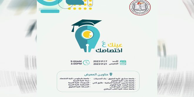بالتزامن مع بدء قبول طلبات المفاضلة الجامعية يطلق الاتحاد الوطني لطلبة سورية يوم الأحد القادم معارض عينك ع اختصاصك التفاعلية في الجامعات، لتعريف الطلاب الناجحين في الشهادة الثانوية بالاختصاصات المتوافرة في الجامعات والمعاهد.