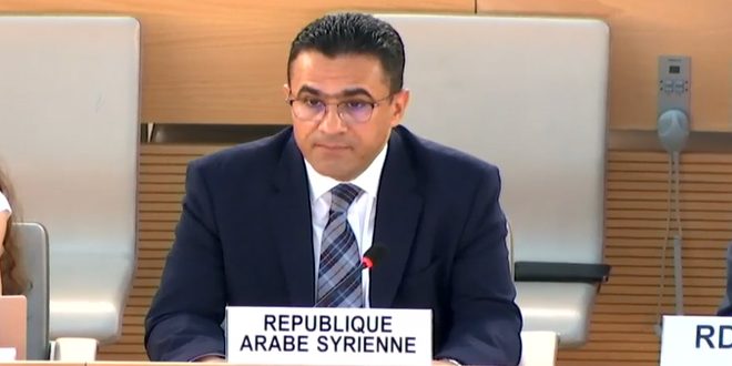 أكد مندوب سورية الدائم لدى مكتب الأمم المتحدة والمنظمات الدولية الأخرى في جنيف السفير حيدر علي أحمد أن الرفع الفوري الكامل وغير المشروط للتدابير الانفرادية القسرية المفروضة على الشعب السوري هو وحده الكفيل بمعالجة آثارها الكارثية على حقوق الإنسان والوضع الإنساني في سورية.