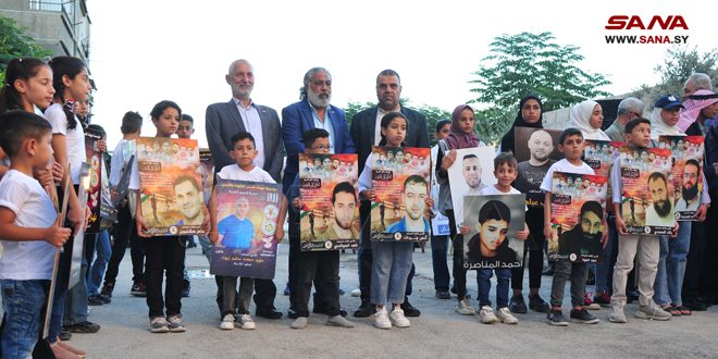 من جهته رئيس لجنة دعم الأسرى المحررين والمعتقلين السوريين في سجون الاحتلال الإسرائيلي الأسير المحرر علي يونس، بين أنه من خلال إقامة الوقفات والفعاليات التضامنية نؤكد أن الأسرى يعيشون في ضمائرنا وقلوبنا ووجداننا، وواجب علينا الدفاع عنهم وفضح ممارسات كيان الاحتلال بحقهم لنعري هذا الكيان أمام العالم، والعمل على الإفراج عنهم.