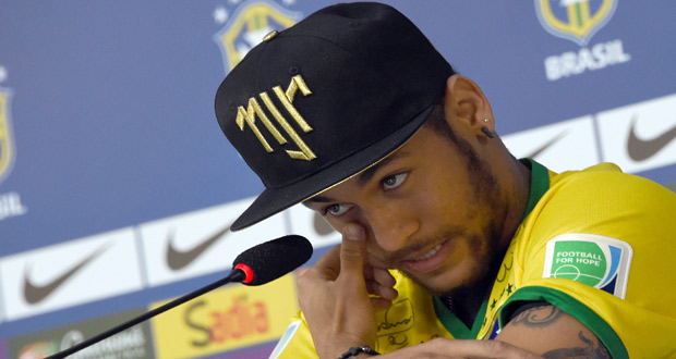 البرازيلي نيمار يبكي خلال مؤتمر صحفي