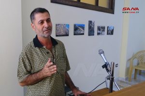 وبين الشاعر وعضو اتحاد الكتاب فرع طرطوس زهير حسن أن ما يميز الاديب هو التزامه بالقضايا الوطنية والاجتماعية ويجب على الأديب أن يستنهض همم الشباب للعمل والبناء في ظل الأزمات وهذا ما تحدثت به قصيدته الأولى التي جاءت بعنوان “رحيل الظلال” والثانية التي تحكي قصة عشقه للوطن.