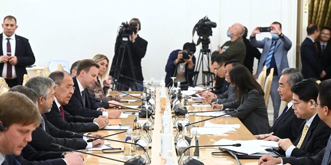 ونقل موقع RT عن بيان للخارجية الروسية قوله في أعقاب لقاء الوزيرين الروسي والصيني بموسكو: إن الجانبين نوها بالحالة الراهنة للعلاقات الروسية الصينية التي تستمر في التطور بديناميكية في ظل الأوضاع السياسية الخارجية غير المستقرة والمتوترة.