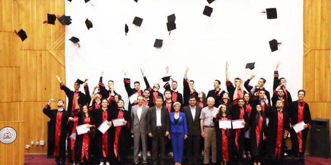 احتفل المركز الوطني للمتميزين بحمص اليوم بتخريج الدفعة الثانية عشرة من طلابه، حيث تم تسليم الشهادات لثلاثين طالباً وطالبة من مختلف المحافظات السورية، وذلك على مسرح المدرج الكبير في كلية الآداب بجامعة البعث.