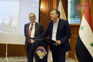ولفت إلى أن دفتي الكتاب تسلطان الضوء على النشاطات الاقتصادية والحياة التاريخية لحلب ورجال الأعمال فيها والتجار العرب والأجانب وأسماء رؤساء غرفة التجارة منذ العام 1885 وحتى اليوم، و”تضم محطته الأخيرة لمحة عن زيارة السيد الرئيس بشار الأسد والسيدة الأولى أسماء الأسد إلى أسواق المدينة القديمة وخاناتها المدمرة، ودورها في إعادة الأمل لأصحاب المحال التجارية والخانات والأسواق بإعادة بنائها من خلال العمل بالمرسوم رقم 13 المتضمن الإعفاءات الضريبية والتسهيلات المالية وتبسيط الإجراءات لعودة الحياة من جديد فيها”.